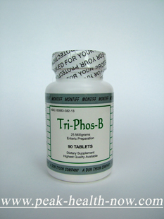 Insufficient P5’P may cause abnormal metabolites such as Homocysteine (which is associated with heart attacks and strokes). Pyridoxal- 5’-Phosphate is utilized by over 60 enzymes, and it is also essential for fat and carbohydrate metabolism. Tri-Phos-B contains 20 mg. of Pyridoxal-5’-Phosphate.